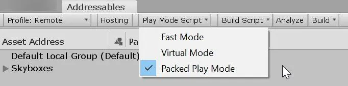 But you might consider packed play mode once you’re done working with addressables content to gain faster iterations, as these assets will require minimum processing while being loaded.