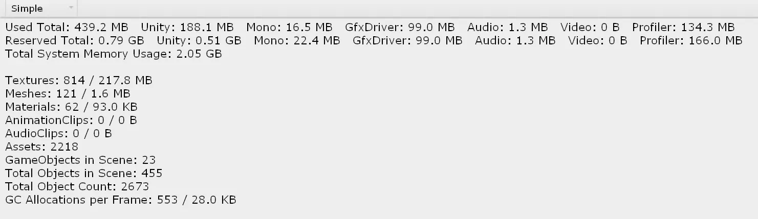 Time to pay attention to this very important section. Our goal is to diagnose easy memory gains and implement them fast. There are several ways to do this, but one of the most powerful yet simplest methods to pick the low-hanging fruits by loading the initial scene and opening up the profiler. Why this?