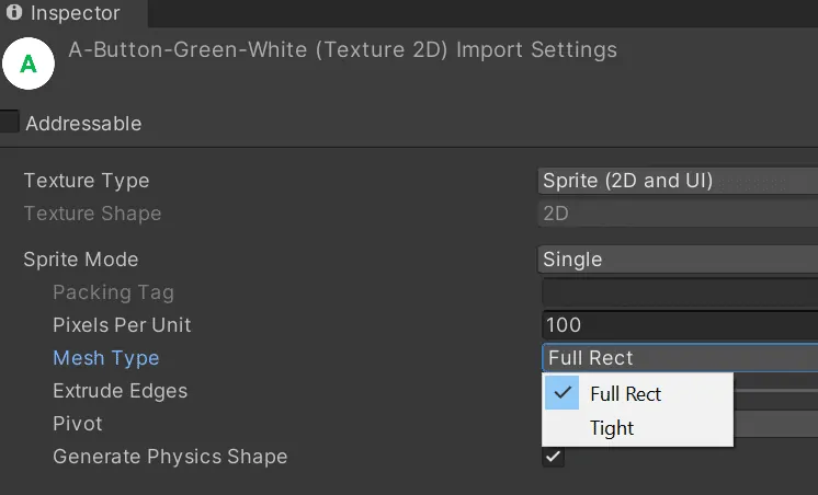 The sprite’s mesh type is all about how Unity will render your sprite in your game.
