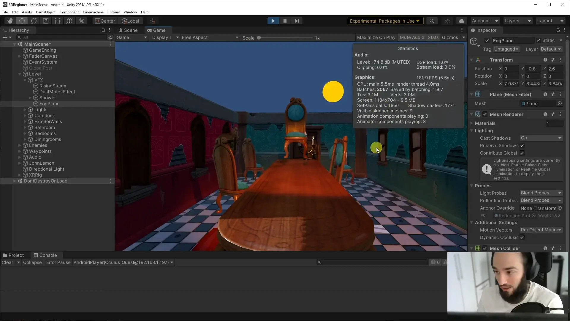 If you have previous experience developing for Quest, you will instantly know that we are way above our budget regarding batches and triangles count. Btw, batches is just another word for draw calls. And draw calls are the way your CPU has... to tell the GPU to render something.