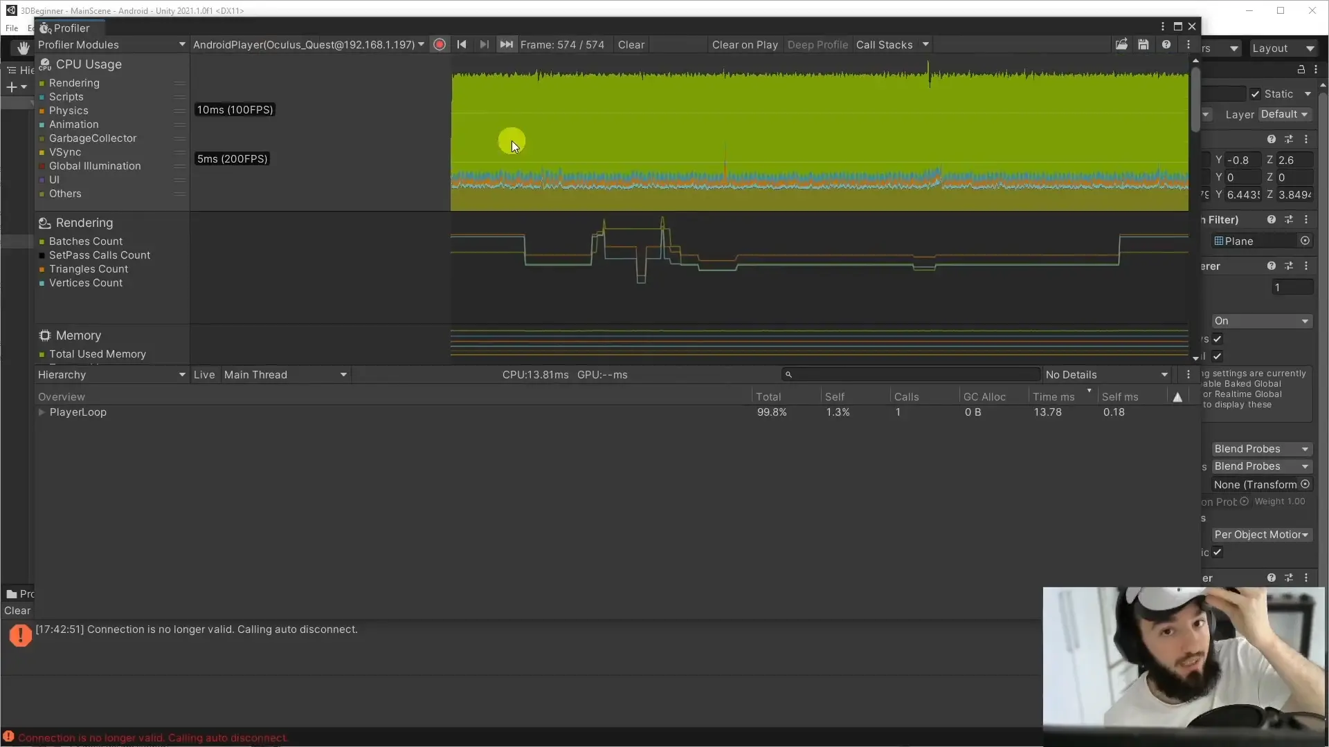 Make sure that you're recording on the profiler and put the headset on again. Don't forget to close your eyes so the 20 FPS don't hurt your brain.