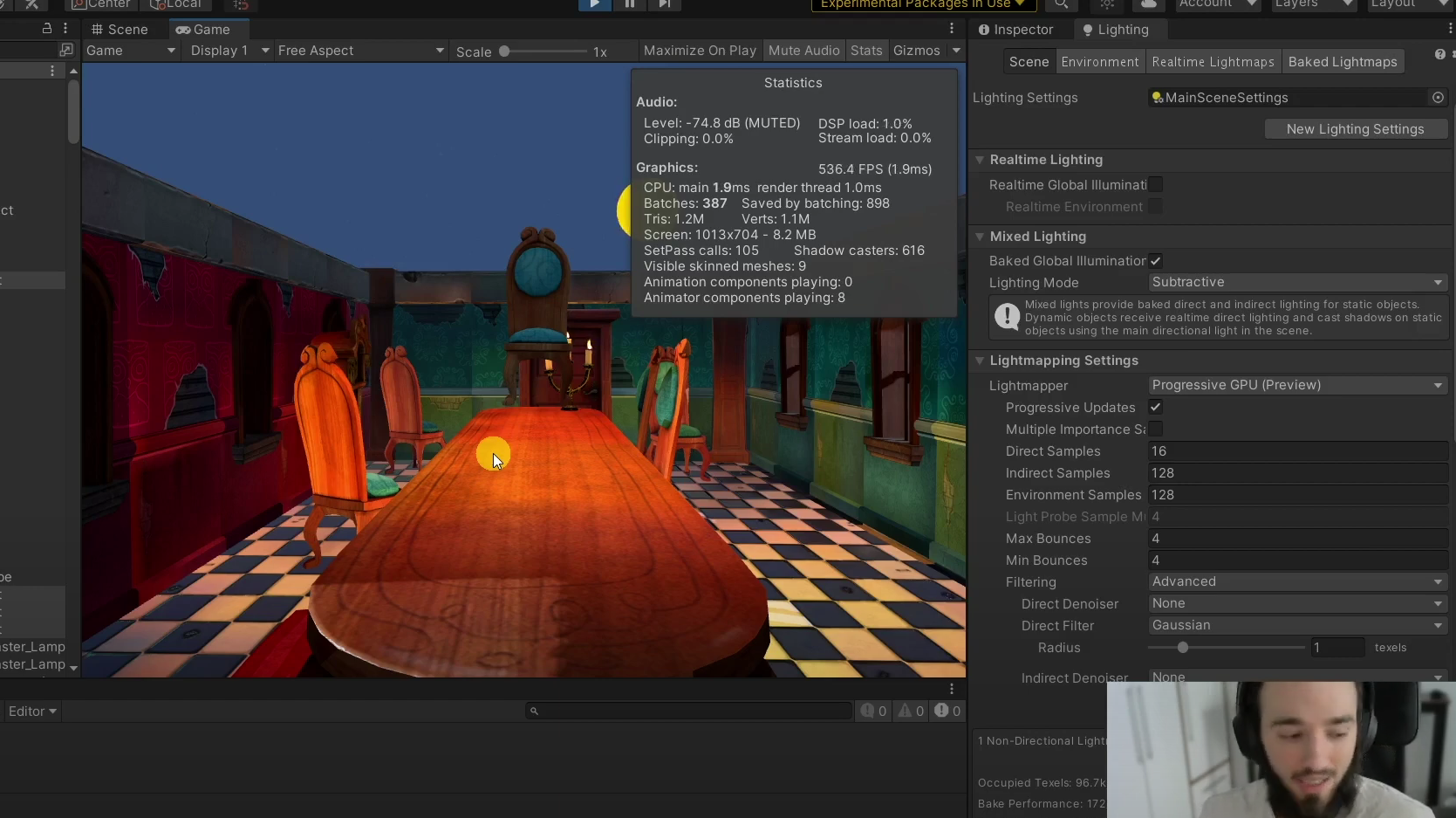 - Baking lights: slightly detrimental to the player (missing dynamic lighting effects)