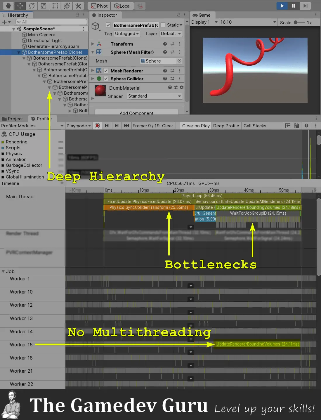 Unoptimized hierarchies causes two BIG problems in Unity.