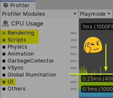 Effectively, I can see in the profiler there’s almost no overhead on the CPU side. Most of the time we’re under 0.01ms, which is pretty damn good.